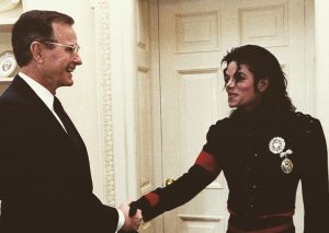 Джордж Буш-старший и певец Майкл Джексон, фото из инстаграма Библиотеки 41-го президента США