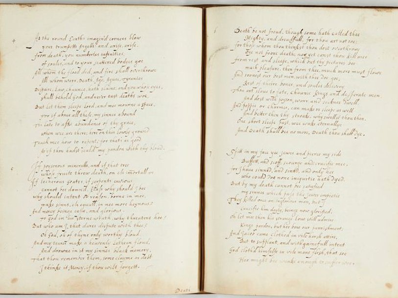 Один из разворотов манускрипта Sotbey's В поместье Мелфорд-холл, расположенном в графстве Саффолк, была найдена рукописная книга, содержащая обширное собрание произведений выдающегося английского поэта Джона Донна.