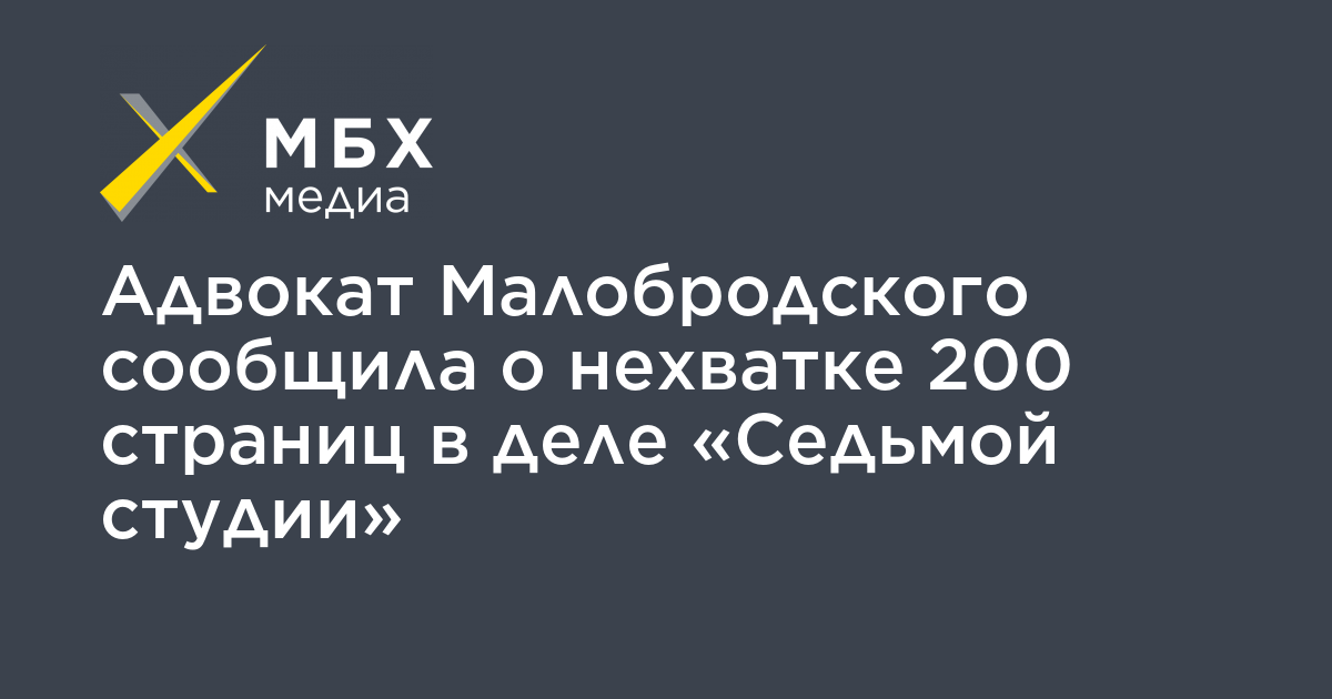 Адвокат Малобродского сообщила о нехватке 200 страниц в деле «Седьмой студии»