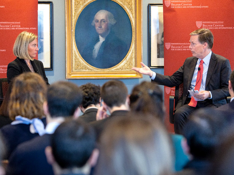 "В последние недели мы видели, что разделяем одинаковый интерес к решению проблемы нарушения Россией территориальной целостности Украины. Только вместе Европа и Америка могут противостоять вызовам, которые Россия выдвигает и на европейской территории, и в других местах", - сказала Могерини, выступая в понедельник в Школе управления им. Джона Кеннеди Гарвардского университета (цитата по "Интерфаксу").