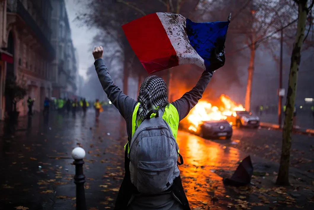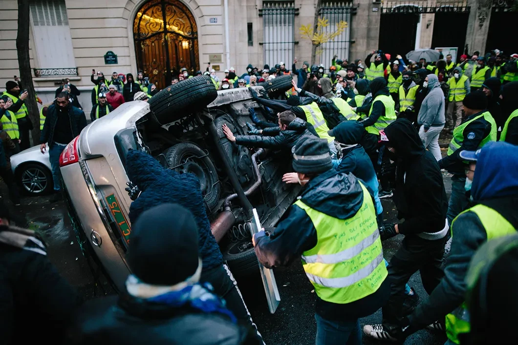 В субботу, 1 декабря, «желтые жилеты» снова вышли на Елисейские поля. Протест, начавшийся как топливный, уже точно стал политическим. С посланием к активистам обращается президент, с их представителями встречается министр, а французские СМИ отдают участникам массовых протестов «восемьдесят процентов» народной поддержки (из опрошенных на тех же улицах). Несколько политических партий активно участвуют в протестной повестке — да и власти удобно обвинять в погромах националистов, но те явно не руководят протестами — явного лидера у протеста вообще на этот раз нет. Тем хуже для правительства.