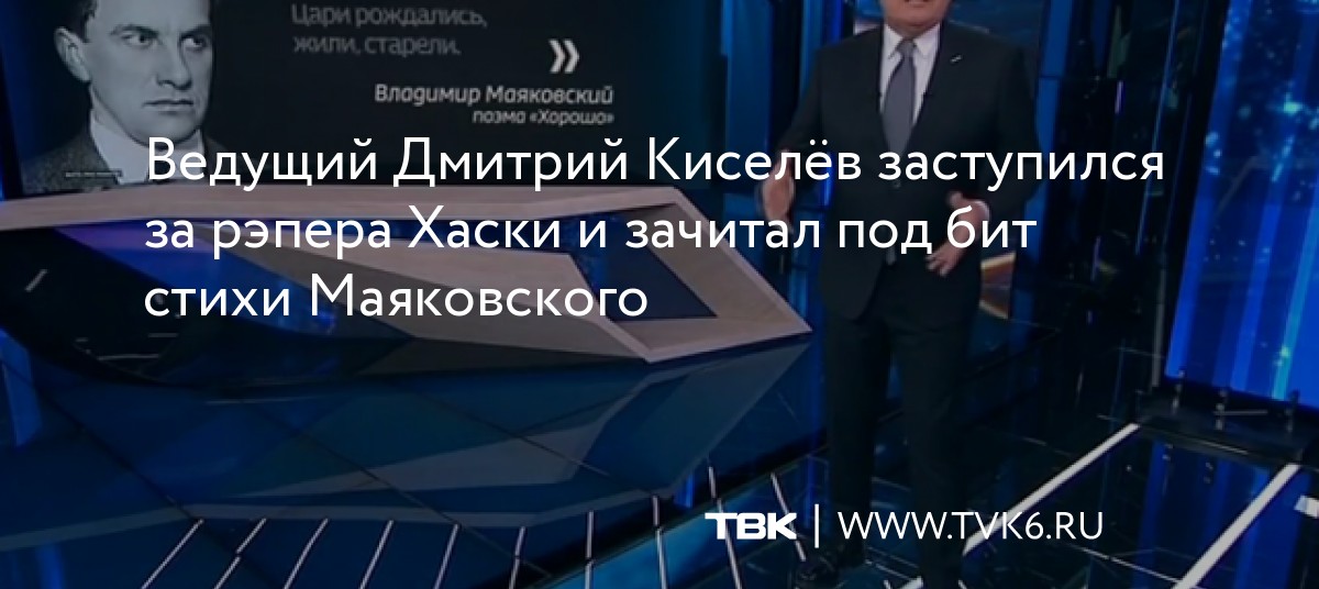 Ведущий Дмитрий Киселёв заступился за рэпера Хаски и зачитал под бит стихи Маяковского