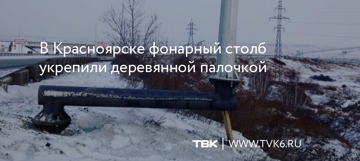 В Красноярске фонарный столб укрепили деревянной палочкой
