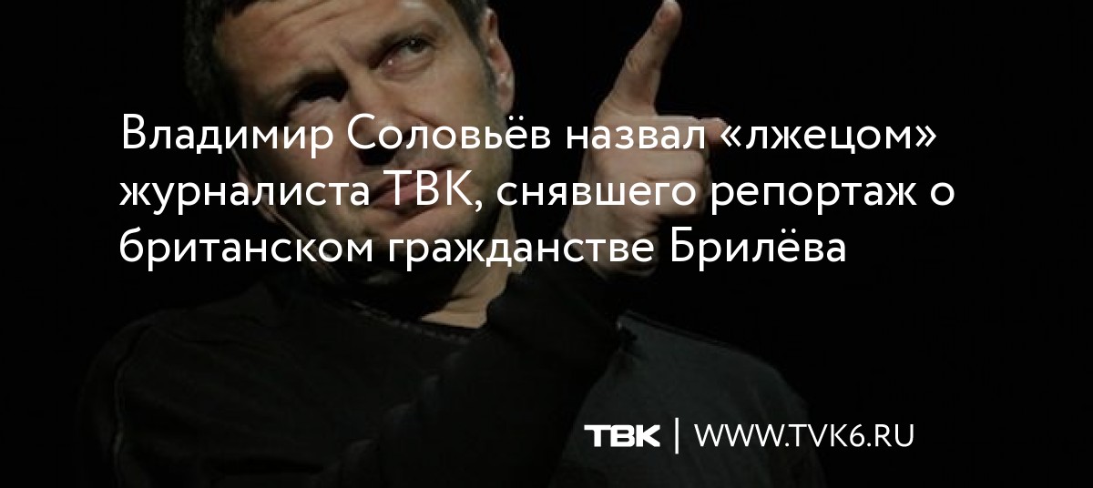 Владимир Соловьёв назвал «лжецом» журналиста ТВК, снявшего репортаж о британском гражданстве Брилёва
