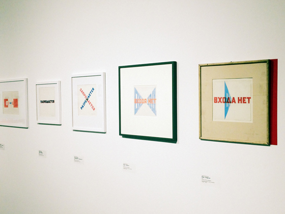 © Надя Плунгян Фрагмент экспозиции. Серия «Входа нет» — Интересно, что эти последние работы получились очень современными и даже в чем-то отражают российскую ситуацию, по крайней мере, для моего поколения: хотя они создают глухую стену, в которую зритель упирается и не может дальше пройти, какой-то выход содержится в самой архитектуре букв.