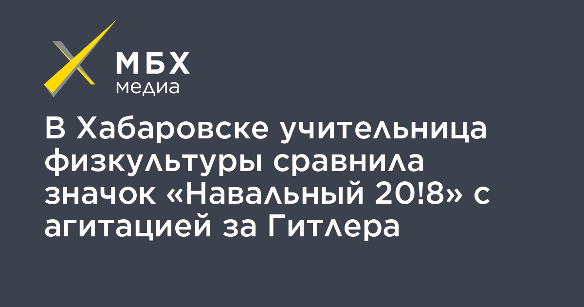 В Хабаровске учительница физкультуры школы №9 Надежда Матвеева отчитала старшеклассницу за значок «Навальный 20!8», сравнив его с агитацией за нацизм. Запись разговора ученицы с преподавателем опубликовал местный штаб Навального у себя в Twitter.