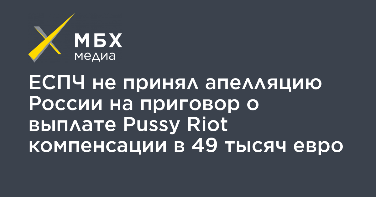 Комиссия из пяти судей ЕСПЧ отказала России, которая обжаловала решение о выплате участницам Pussy Riot компенсации в 49 тысяч евро за уголовное преследование по делу о «панк-молебне» в Храме Христа Спасителя, об этом сообщил руководитель международной правозащитной группы «Агора» Павел Чиков у себя в Telegram.