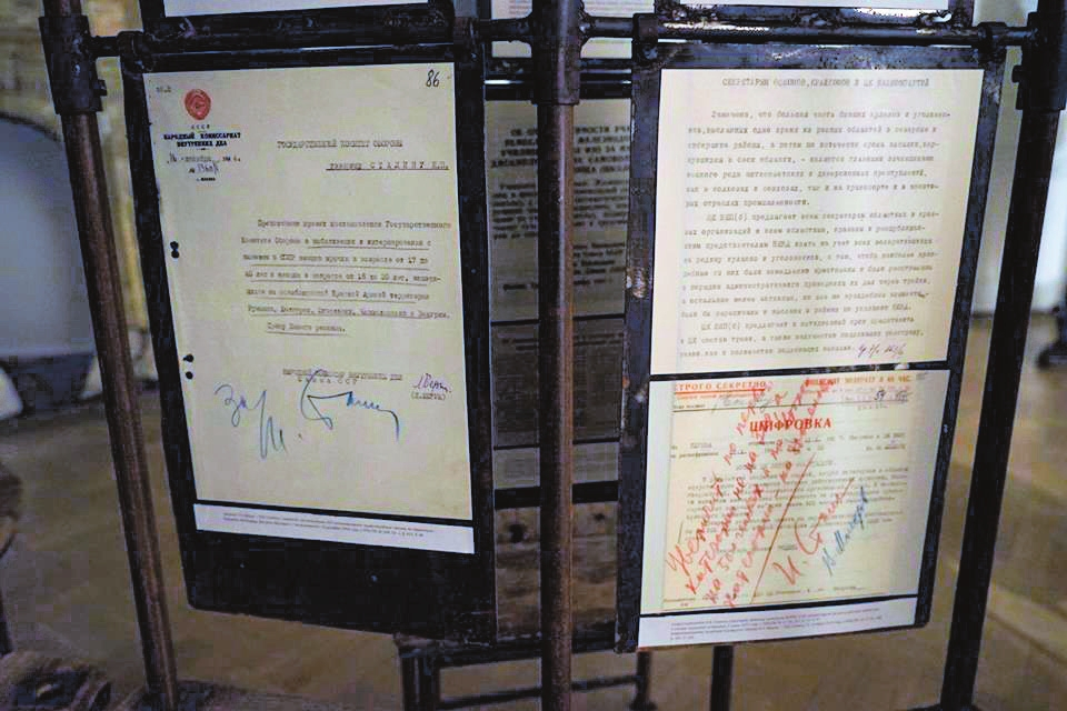 Но ни в одном архивном документе, множество которых я пересмотрела, не было сказано, что в бараках были матрацы, сенные тюфяки или просто сено, — описаны голые нары, нераздевающиеся люди, мешки вместо одежды и потеря места на нарах из-за выхода по нужде, поэтому некоторые не выходили. На выставке представлены самые сильные из всех собранных документов — из Центрального архива ФСБ, это цитаты из отчета внутренней проверки НКВД, разбирательства после сообщений о невыносимых условиях, пытках и смертях.