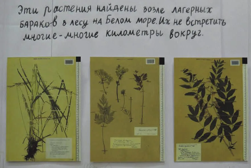 Я нашла полевые этикетки Владимира Николаевича, на которых указан конкретный барак. В опубликованной в 1971 году статье описаны все обнаруженные к тому времени растения с пометами о редкости для Карело-Мурманского региона и местах обнаружения. Из работы о фертильности пыльцы растений полуострова понятно, что в конце 1970-х все заносные травы чувствовали себя хорошо. В конце 1990-х из пяти трав зафиксировано только два вида. Травы лугов и лесных опушек Приуралья, которые были занесены в конце 1920-х на лесозаготовки Соловецкого лагеря, не выдержали затенения зарастающего лиственного леса. Но мы доподлинно знаем, что травы были, потому что остались собранные Вл. Веховым листы гербария.