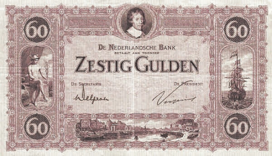 Рис. 18. 60 гульденов, Нидерланды, 1927 год (Bank Note Museum, www.banknote.ws)