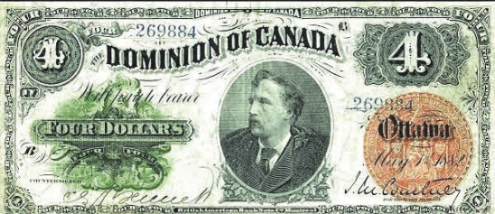 Рис. 19. 4 доллара, Канада, 1878 год (Bank Note Museum, www.banknote.ws)