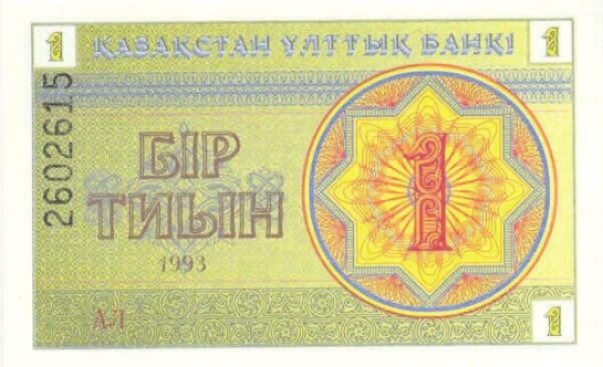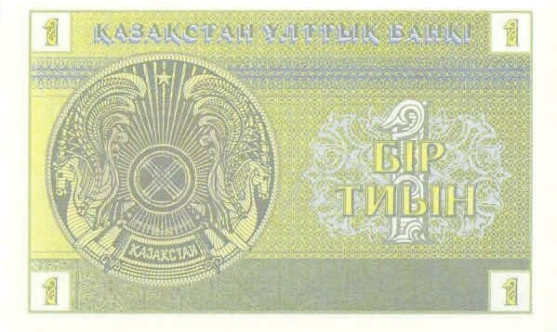 Рис. 10. 1 тиын, Казахстан, 1993–1995 годы (105×65 мм) («Википедия», Қазақстан Ұлттық Банкi)