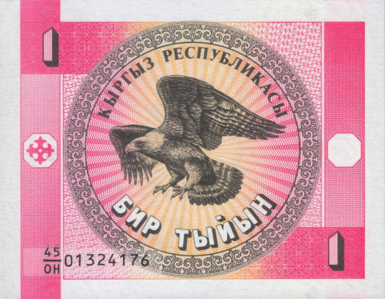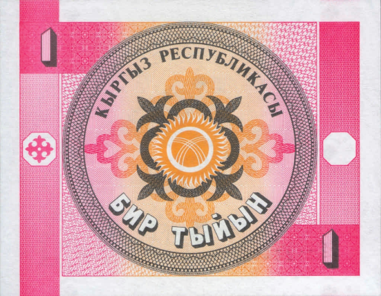 Рис. 11. 1 тыйын, Киргизия, 1993–2008 годы (90×70 мм) («Википедия», Кыргыз Республикасынын Улуттук банкы)