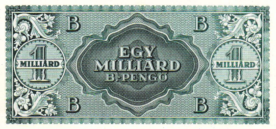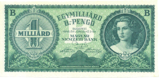 Рис. 14. 1 млрд билпенгё = 1021 пенгё, Венгрия, 1948 год (172×82 мм) («Википедия», Magyar Nemzeti Bank)