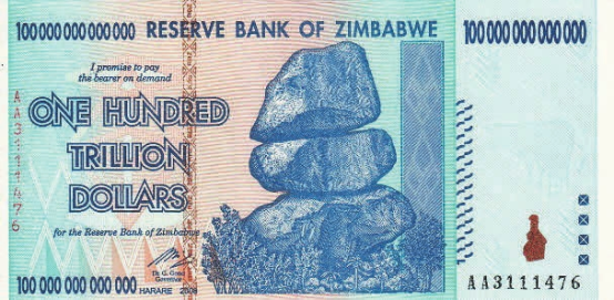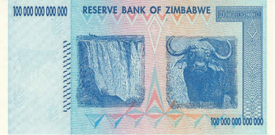 Рис. 13. 100 трлн долл., Зимбабве, 2009 год (148×74 мм) («Википедия», Reserve Bank of Zimbabwe)