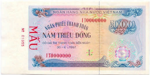 Рис. 12. 1 млн донгов, Вьетнам, образец 1996 года (art-hanoi.com)
