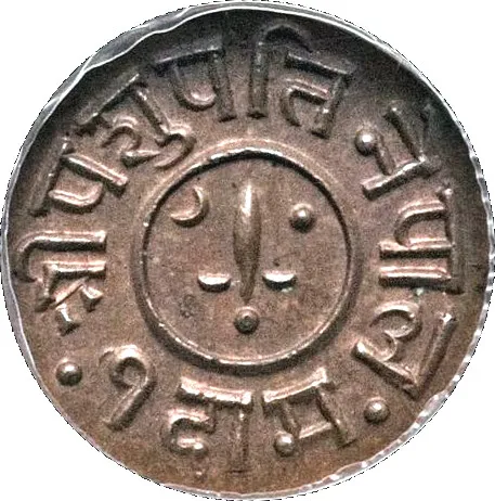 Рис. 1. ¼ пайса, Непал, 2004/1947 годы (медь, 14 мм) [1]