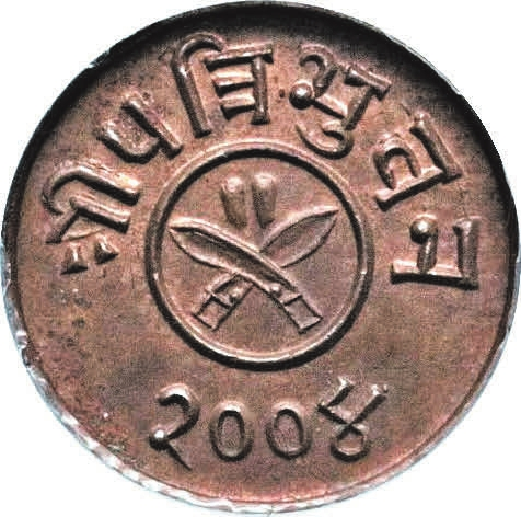 Рис. 6. 4 пайса, Непал, 2012/1955 годы (медь, 20 мм) [1]