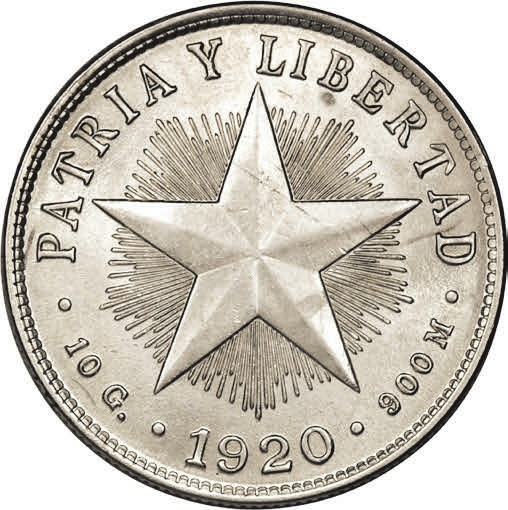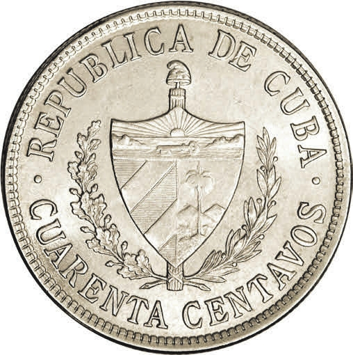Рис. 9. 40 сентаво, Куба, 1920 год (серебро, 28,9 мм) [1]