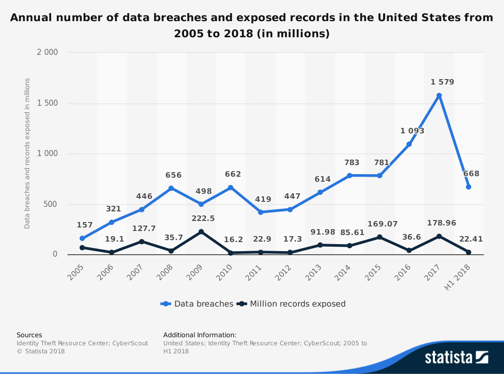 За примерами далеко ходить не надо. Год назад кредитное бюро Equifax обнаружило потенциальную утечку почти 150 млн записей заемщиков. Утекли страшные данные — кредитные карты, дата рождения, номер социального страхования и так далее. Уязвимость позволила хакерам 76 дней активно общаться с базой данных, так как мониторинг аномального числа запросов не работал. На удивление, роста числа мошенничеств, связанных со взломом, пока не обнаружено.