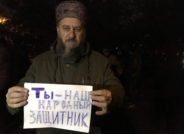 Поддержать Курбединова к суду пришли больше 200 земляков. Они устроили флэшмоб, поочередно демонстрируя плакат с надписью "Ты - наш народный защитник".