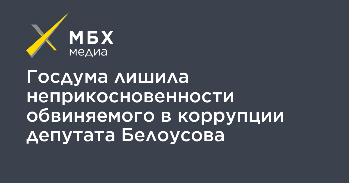 До этого Генпрокуратура просила Госдуму решить вопрос о лишении Белоусова депутатской неприкосновенности из-за выдвинутых против него обвинений в «преступлениях финансового характера», которые были связаны с делом обвиняемого в коррупции экс-губернатора Челябинской области Михаила Юревича.