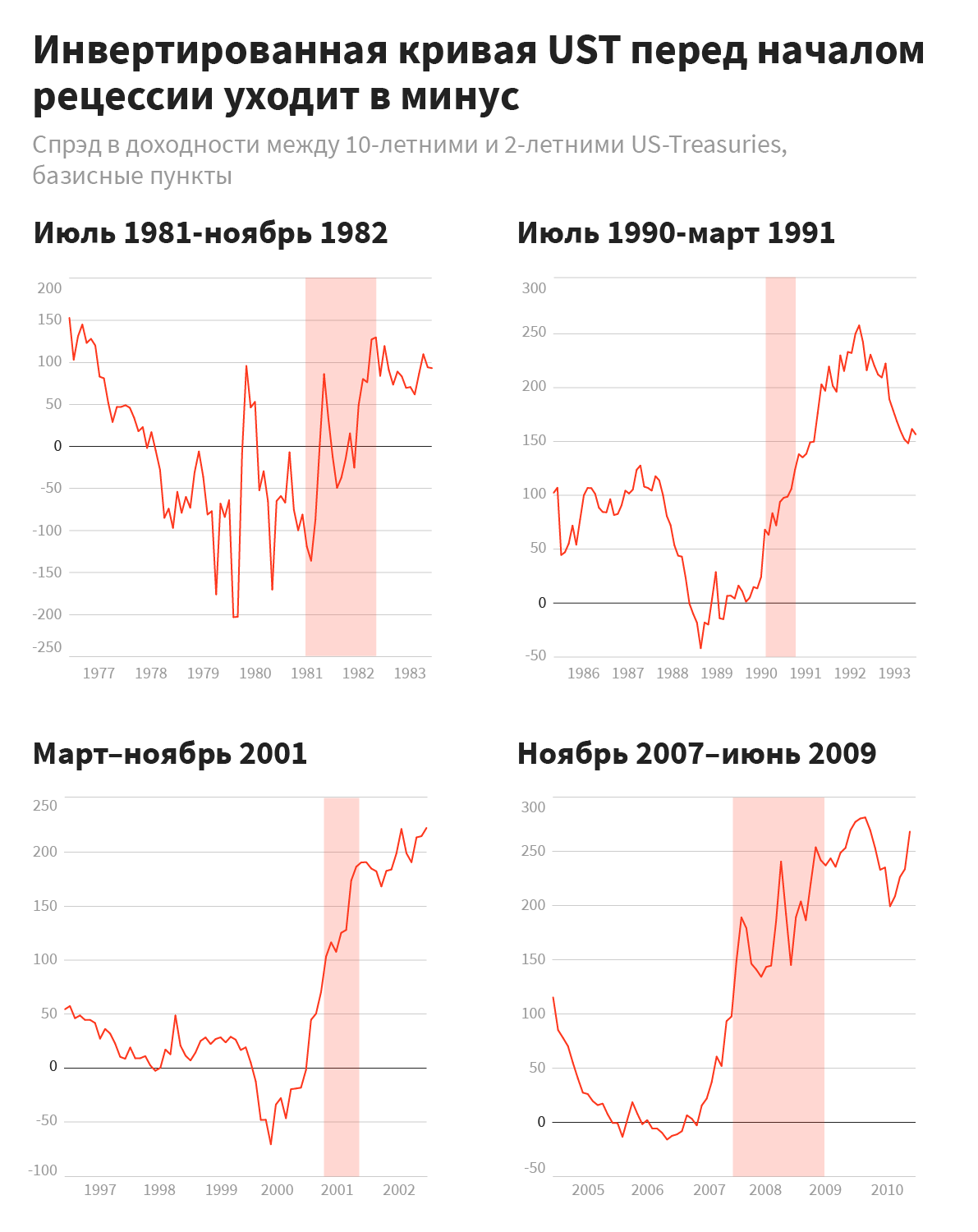 Ситуация уже достаточно тревожна, но при хорошей конъюнктуре потерянное будет не так трудно наверстать. Гораздо хуже, если нынешнее падение — признак поворота экономического цикла. Экономика США почти непрерывно растет с 2009 года, и к июлю 2019-го может поставить рекорд по длительности роста. Это значит, что следующая большая рецессия не за горами. На этой неделе экономисты уже разглядели возможный признак ее скорого приближения. Но исторически самый надежный индикатор — разница в доходности между 10- и 2-летними американскими гособлигациями — пока говорит о том, что в ближайший год кризис прийти не должен.