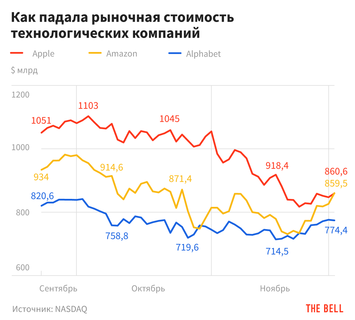 Быстрее всего осенью падали именно те бумаги, которые весь год двигали рынок вверх, — акции технологических гигантов. Предсказать, что будет с ними в 2019 году, не берется никто, но волатильность рынка наверняка останется высокой, учитывая многочисленные политические риски — прежде всего, торговую войну между США и Китаем, от которой страдают технорынки обеих стран. Главная причина обвала рынков 6 декабря — арест в США финансового директора и дочери основателя китайской Huawei Сабрины Менг.