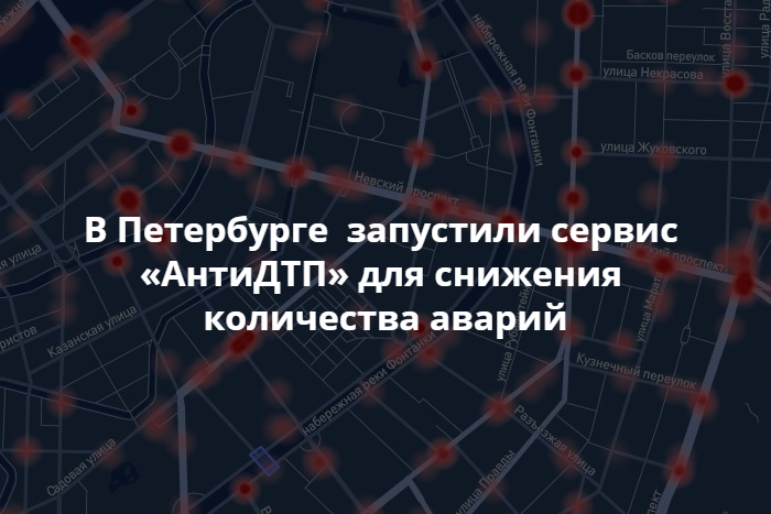 Активисты из Петербурга создали веб-сервис «АнтиДТП», который представляет собой интерактивную карту для отслеживания числа аварий на определенных участках дорог.