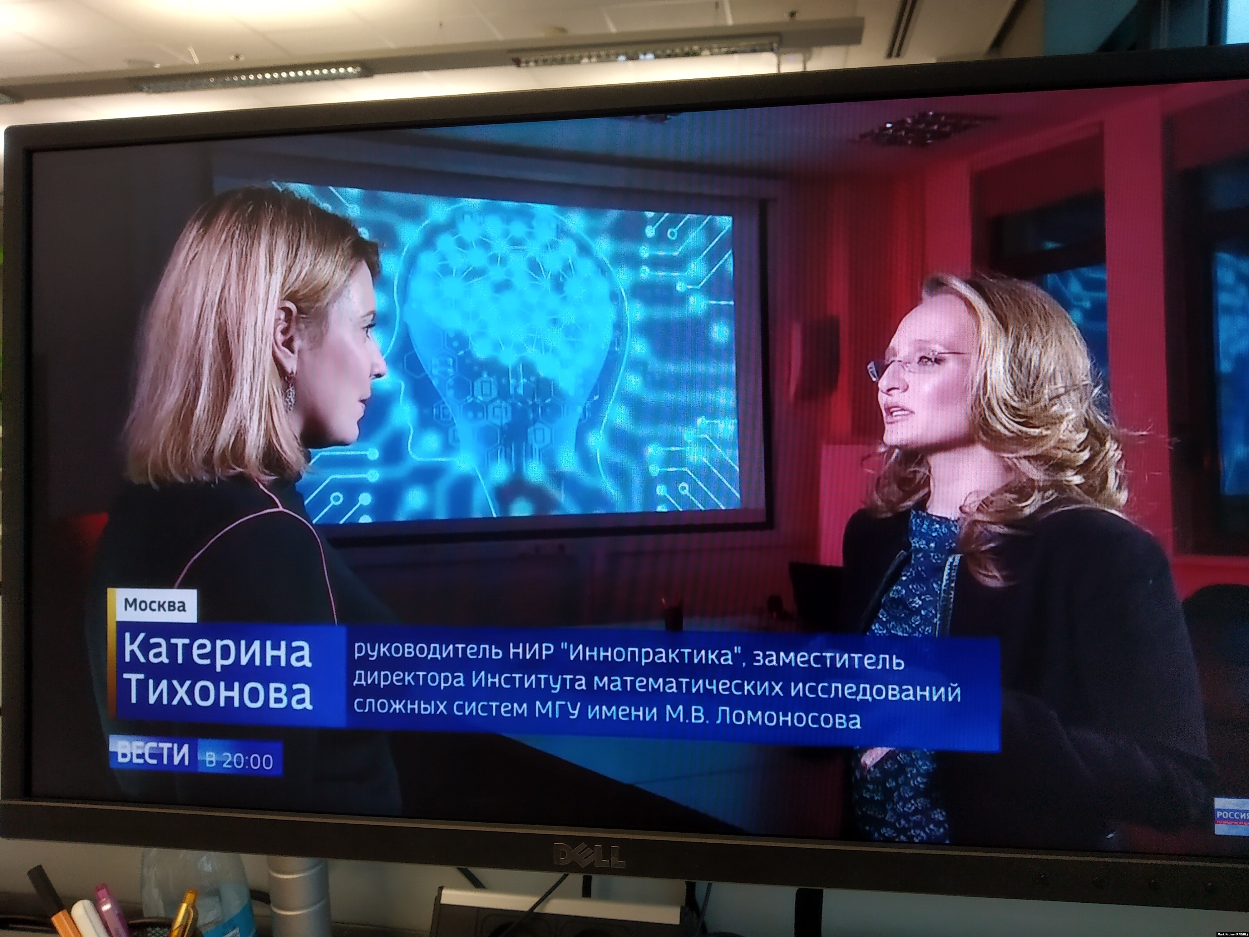 "Очень важно, что Нейроцентр построен именно на синергии этих технологий и на реальном их спросе в экономике. Действительно можно сказать, что одновременно человек познает и возможности технологий, и себя", – говорит в сюжете "Вестей" Катерина Тихонова, которую представляют зрителям не только в качестве главы "Иннопрактики", но и как заместителя директора Института математических исследований сложных систем МГУ. Именно в соавторстве с экспертами этого института Тихонова, как отмечала "Медуза" в своем расследовании в августе 2015 года, написала большинство своих научных работ.