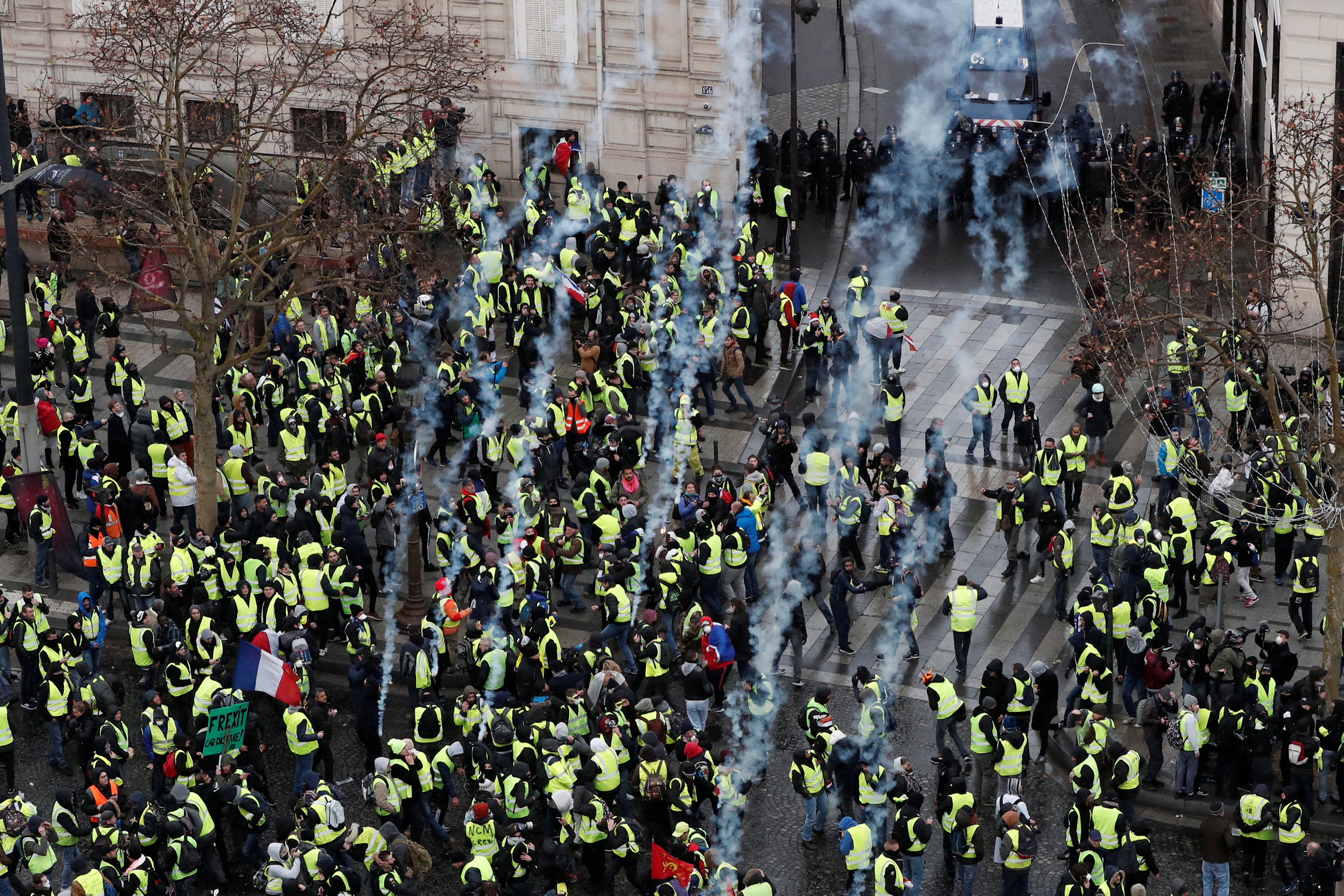 Ранее в субботу сообщалось, что в центре Парижа на Елисейских полях и соседних улицах произошли столкновения между полицией и участниками демонстрации так называемых "жёлтых жилетов".