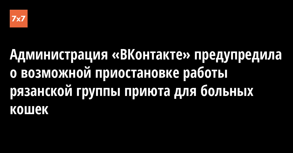 Администрация соцсети «ВКонтакте» предупредила руководителей рязанского мини-приюта для больных кошек «Еще один шанс» о возможном приостановлении работы группы. Об этом написала администратор группы Адриана Иллионова 7 декабря.