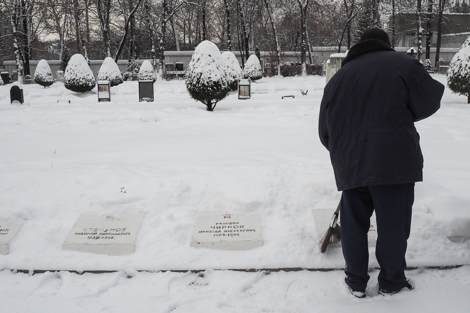 «Ломами из промерзшей земли могильные камни приходилось выламывать. После этого надгробия перегружались на тележки и перемещались для новой покраски и нанесения надписей в закрытое от ветра и снега помещение», — написал Конов. В комментариях добавил, что «таких памятников на кладбище надо „исправить“ несколько десятков».