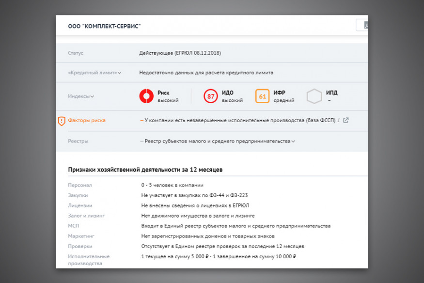 В Рязани, по данным «СПАРК-Интерфакс», зарегистрированы три организации с названием «Комплект-сервис», и только одна из них, согласно видам деятельности, могла провести реставрацию. Это «Комплект-сервис», который принадлежит Александру Панкратову. Однако, по сведениям той же базы данных, организация не ведет никакой деятельности с 2016 года, не участвует в госзакупках и имеет высокий сводный индикатор риска. Это значит, вероятно, что «компания создана не для уставных целей или является брошенным активом». Остальные два «Комплект-сервиса» занимаются перевозками или поставками медицинского оборудования — они вряд ли станут реставрировать надгробия.