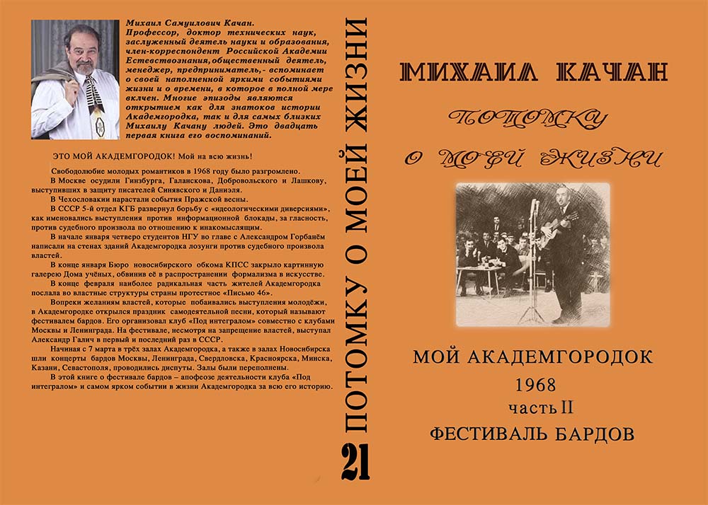 Книга воспоминаний Михаила Качана как раз и завершается 1968 годом. Автор продолжал работать над текстом, одновременно занимаясь постановкой спектакля по стихам Дмитрия Кедрина в Русской библиотеке Сакраменто. Но завершить эту работу он не успел. Михаил Качан умер 2 декабря в Калифорнии на 85-м году жизни. Редакция "Сибирь.Реалий" выражает соболезнования родным и близким.