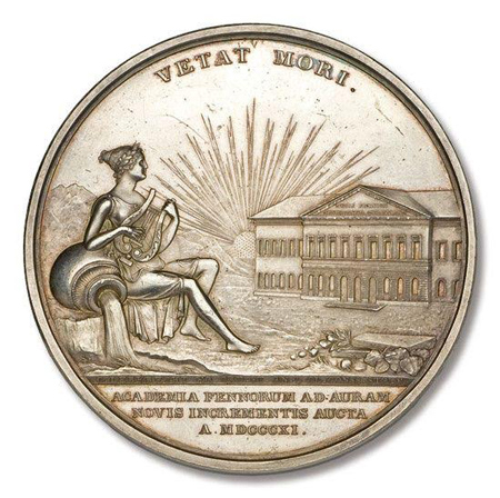 Медаль в память дарования новых прав университету в г. Або (Турку), 1811 г. Надпись на реверсе вверху — VETAT MORI («Запрещает умереть»), под обрезом — ACADEMIA FENNORUM AD AURAM / NOVIS INCREMENTIS AUCTA / A.MDCCCXI («Академия финнов на Ауре, обогащенная новыми приращениями в 1811 г.») Царский перстень