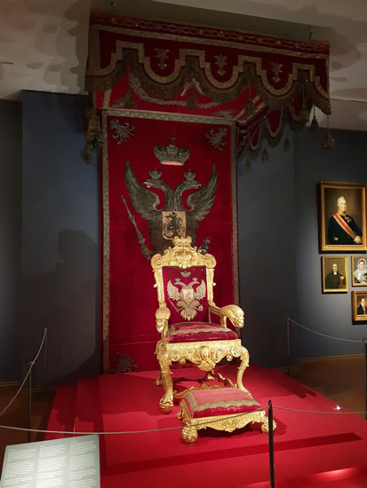 На втором этаже Национального музея Финляндии в Хельсинки два крыла: в одном представлена история страны после обретения независимости в 1917 году, в другом — история времен Российской империи. Здесь посетителей встречает пышный трон с шитыми серебром двуглавыми орлами. На этом троне 29 марта 1809 года Александр I принимал присягу новых подданных. Империя мощно продвинулась на северо-запад, а и без того длинный титул Александра дополнился званием великого князя Финляндского.