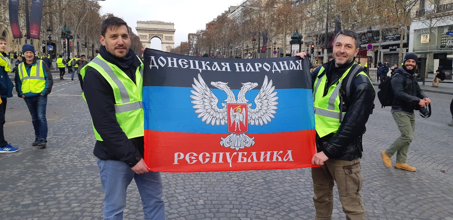В субботу, 8 декабря, интернет заполонили снимки двух участников акций протеста "желтых жилетов" в Париже, развернувших посреди Елисейских Полей, главной улицы французской столицы, флаг самопровозглашенной "Донецкой народной республики". Радио Свобода рассказывает, что известно об этих людях.