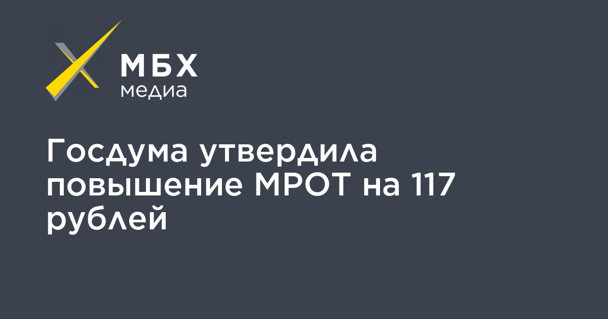 Госдума утвердила в третьем, окончательном, чтении законопроект о повышении минимального размера оплаты труда (МРОТ) на 117 рублей, об этом сообщает «Интерфакс».