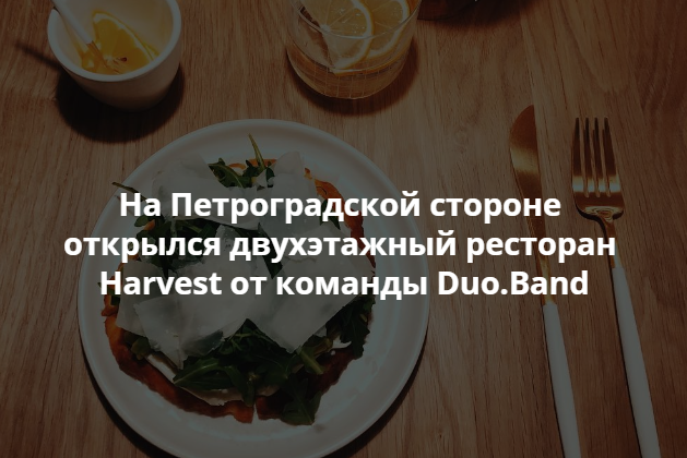 9 декабря на проспекте Добролюбова, 11 открылся ресторан Harvest от ресторанной группы Duo.Band во главе с Дмитрием Блиновым и Ренатом Маликовым (Tartarbar, Duo, Duo.Asia)