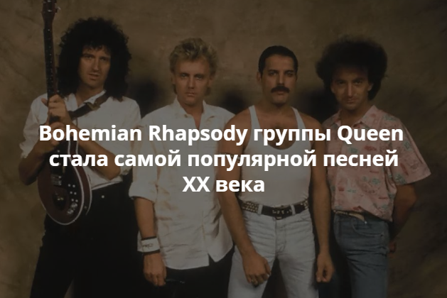 Песня Bohemian Rhapsody британской группы Queen стала самой прослушиваемой песней ХХ века.