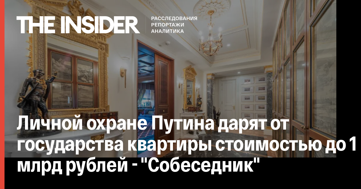 Бывшие сотрудники ФСО из числа личной охраны Путина получили от государства квартиры в Москве, рыночная стоимость которых достигает 1 млрд руб. Это следует из расследования, которое опубликовал «Собеседник».