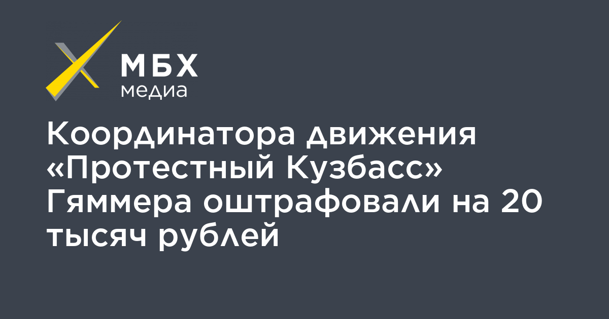 В Новокузнецке Центральный районный суд оштрафовал координатора движения «Протестный Кузбасс» Льва Гяммера на 20 тысяч рублей, об этом активист рассказал «МБХ медиа».
