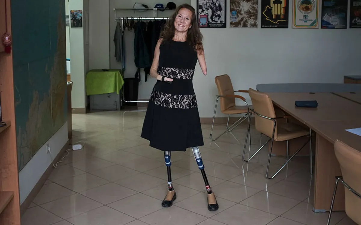 Трейси красит помадой губы, вытаскивает шпильки из волос и крепко обнимается. Если представить все перечисленные движения, не видя ее саму, то можно подумать, что речь идет о счастливой молодой женщине, живущей на полную катушку. Это почти так, с одной поправкой — у нее нет ног и одной руки. Действующая рука тоже не вполне полноценна, а скорее похожа на рычаг. И Трейси Шмитт уже перешагнула порог зрелости. Но она ходит на яхте под парусом, ныряет с аквалангом, летает на параплане и ездит по миру читать лекции в качестве мотиватора. В Москве Трейси была по приглашению Дмитрия Шпаро — известного российского путешественника, писателя и общественного деятеля. Ее лекции были обращены к детям-инвалидам.