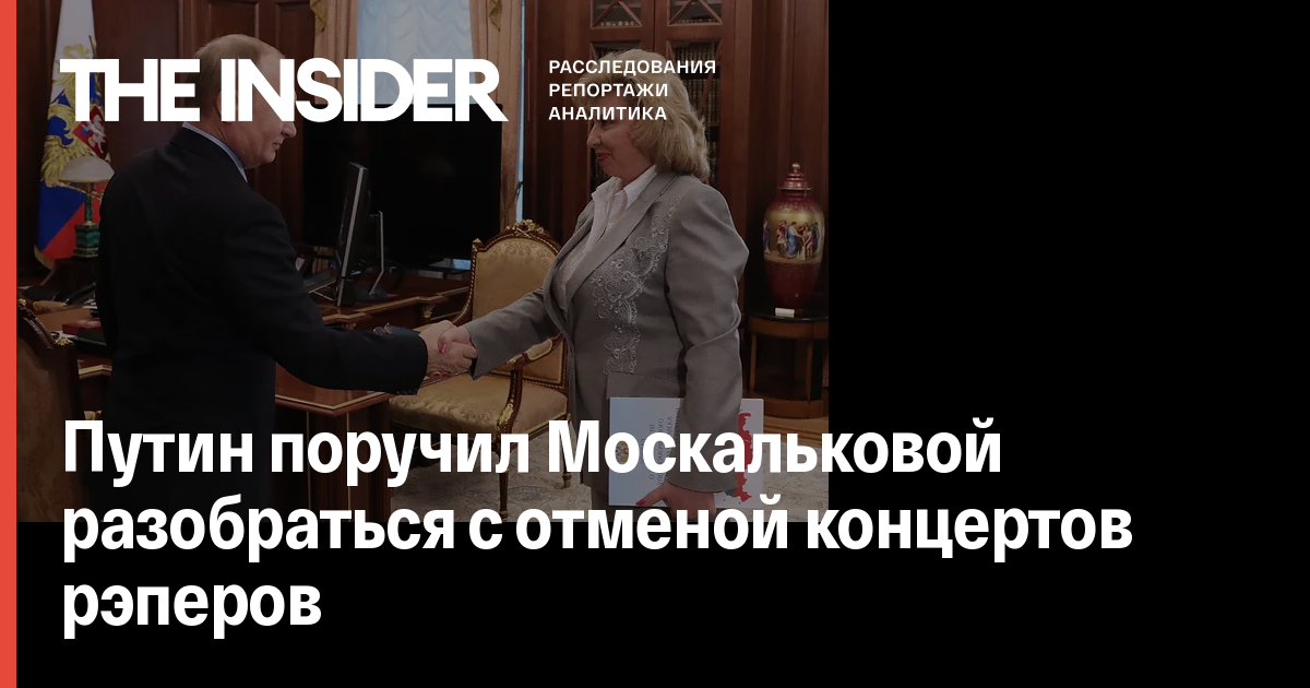 Президент России Владимир Путин поручил уполномоченному по правам человека Татьяне Москальковой выяснить причины отмены ряда концертов рэперов в регионах. Как передает ТАСС, об этом сообщила сама Москалькова.