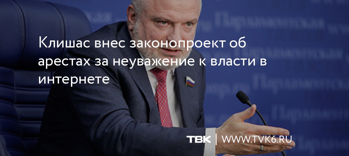Клишас внес законопроект об арестах за неуважение к власти в интернете