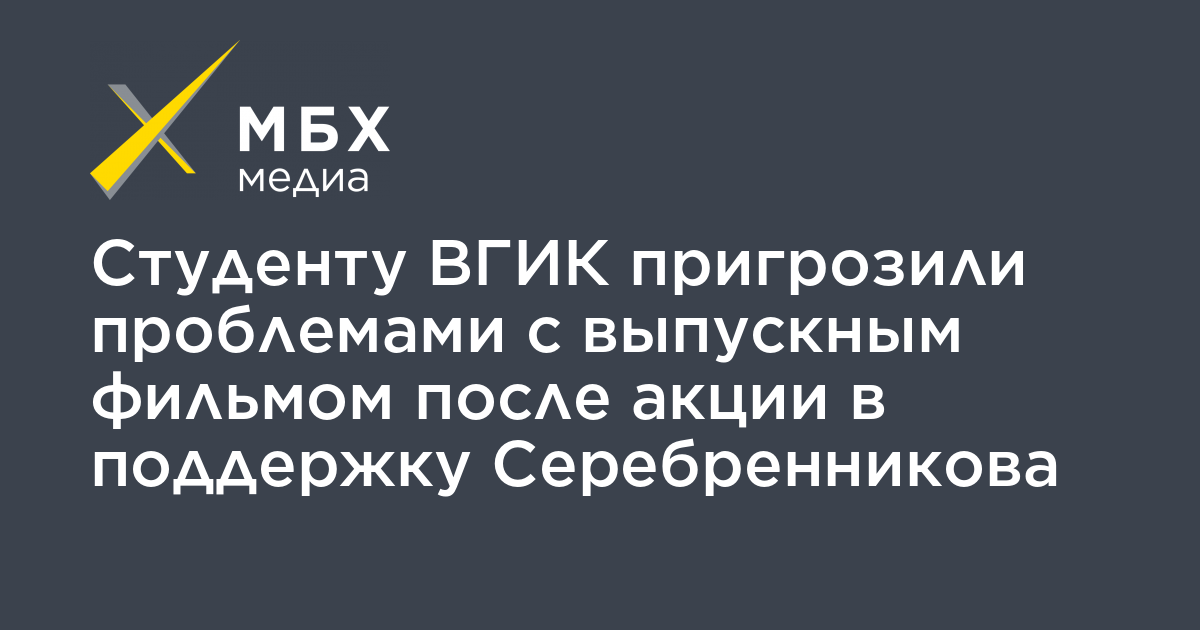 Студенту ВГИК пригрозили проблемами с выпускным фильмом после акции в поддержку Серебренникова
