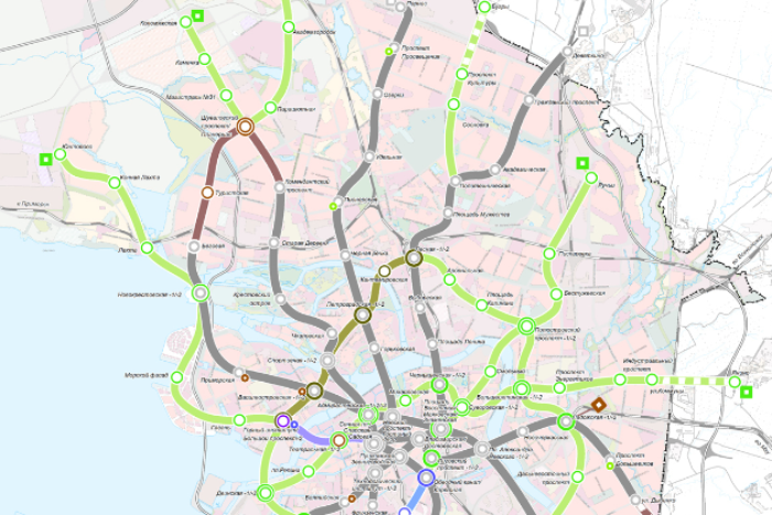 В новой схеме исключили часть Адмиралтейско-Охтинской линии от станции «Двинская» до станции «Петергофское шоссе».