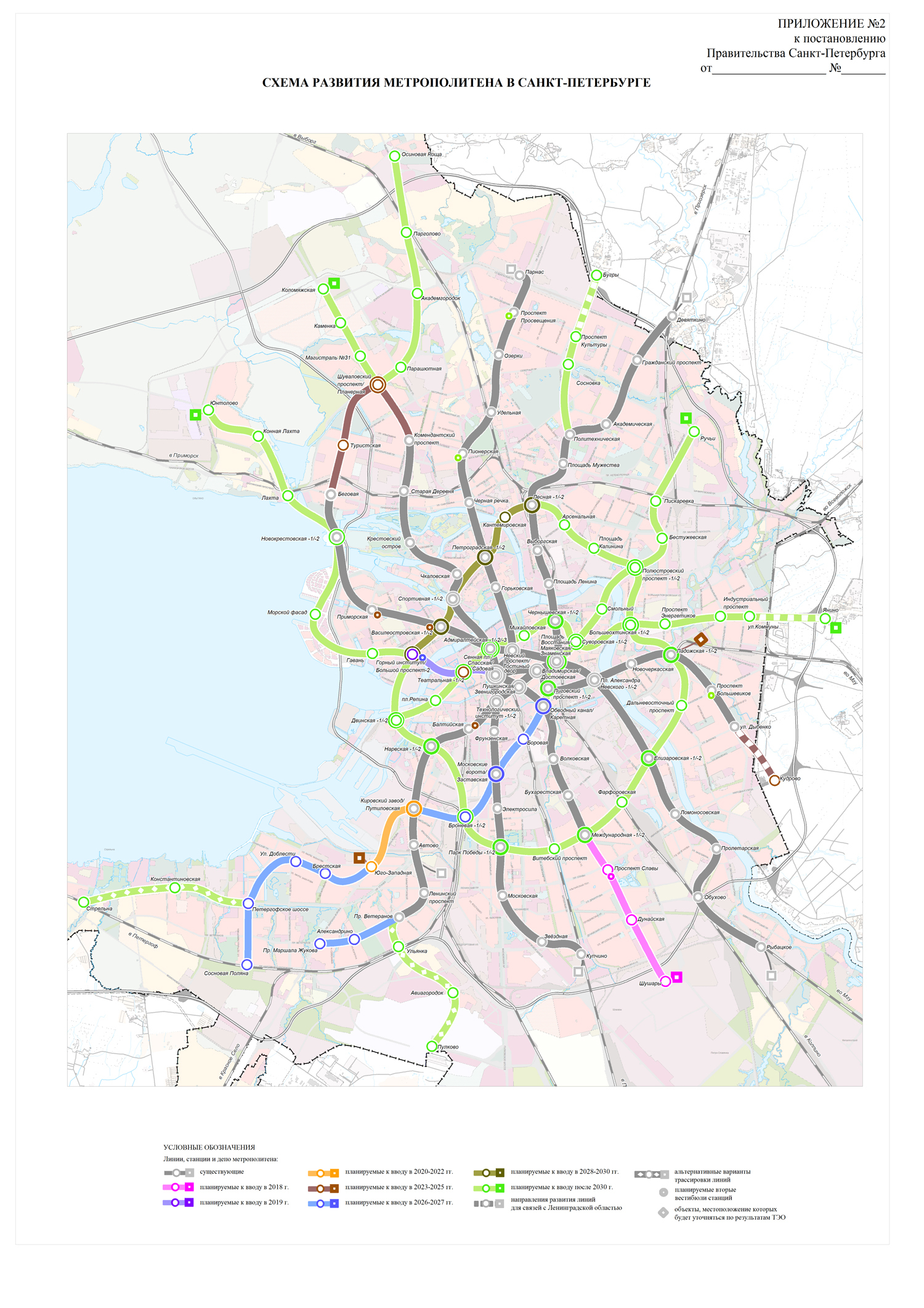 Смольный утвердил новую схему развития метро до 2030 года. На ней отмечена станция «Кудрово» и вторые вестибюли «Приморской» и «Пионерской»