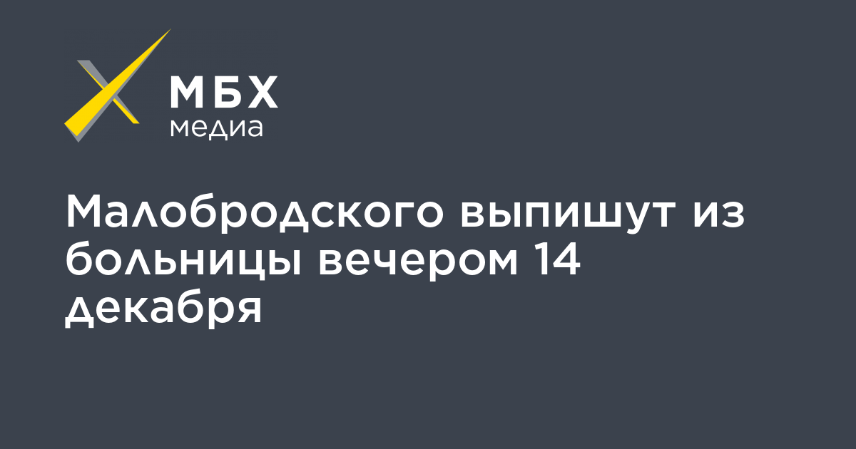 Алексея Малобродского выпишут из московского кардиологического центра имени Александра Мясникова сегодня вечером, рассказала «МБХ медиа» адвокат Ксения Карпинская.